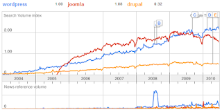 จะสังเกตุว่าผู้ใช้งาน หลังจากที่ผู้ใช้ได้ทดลองใช้ WordPress เวอร์ชั่น 3,0 มีอัตราการเพิ่มขึ้นอย่างรวดเร็ว และมีทีท่าว่าจะเพิ่มมากขึ้นเรื่อยๆ ในขณะที่ Joomla และ Drupal มีอัตราความนิยมในการใช้งาน ลดลงเล็กน้อย แต่ไม่ใช่ว่าเป็นเพราะ Joomla หรือ Drupal แย่ลง แต่เป็นเพราะความมีประสิทธิภาพในการใช้งานที่มากขึ้น ประกอบกับ ความซับซ้อนที่มากขึ้นด้วยเช่นกัน จึงเป็นเป็นเหตุผลที่คนทั่วไปที่ หันมาสนใจ WordPress ที่มีความง่ายต่อการใช้งาน ตาม Concept “ง่ายๆ ไม่ต้องคิดมาก” ทั้งๆที่ความจริงแล้ว WordPress 3.0 ได้เก็บความซับซ้อนประสิทธิภาพอันทรงพลัง เอาไว้ภายใต้หน้ากากอันอ่อนโยน พูดง่ายๆก็คือ เมื่อใดที่คุณต้องการเปิดใช้งานระบบที่ถูกซ่อนไว้อยู่ เพิ่งแค่ตั้งระบบให้เรียกใช้งาน หรือใส่ปลั๊กอินเพื่อดึงความสามารถที่ซ่อนเร้นใน WordPress 3.0 ออกมาได้ตลอดเวลา